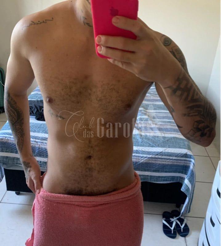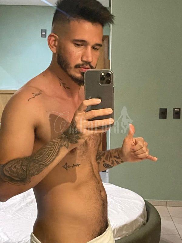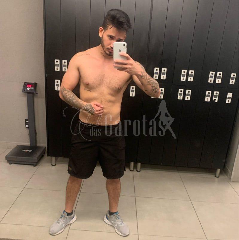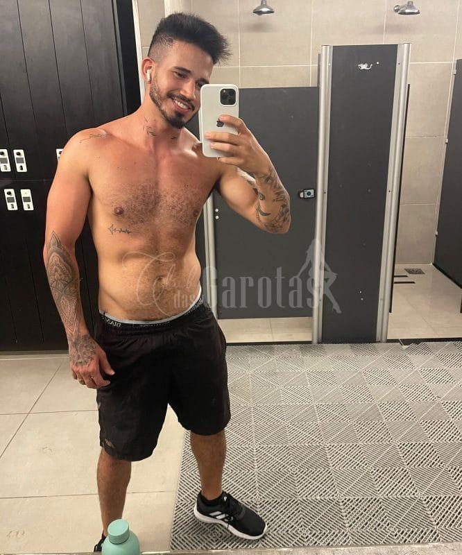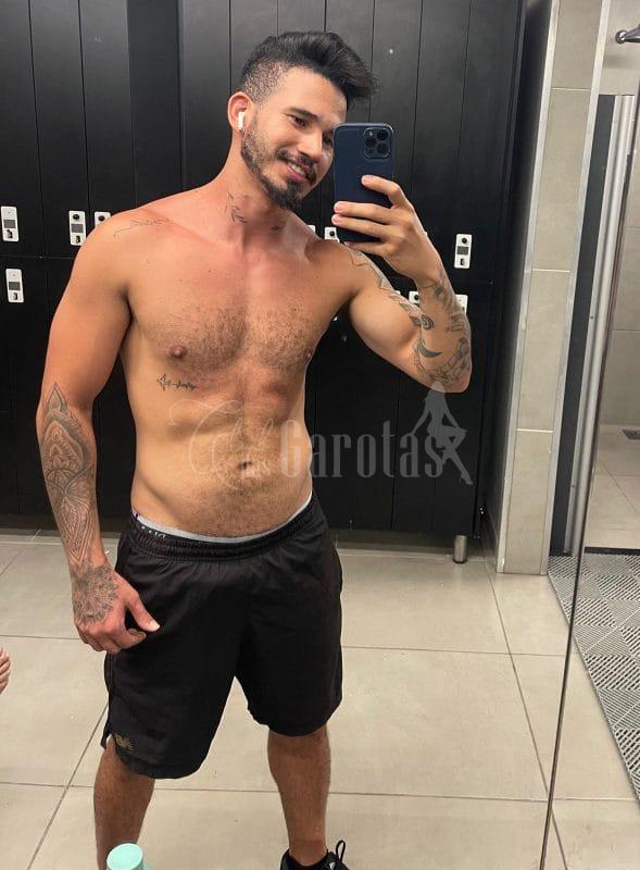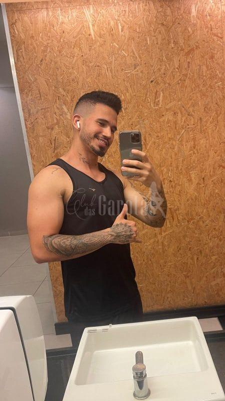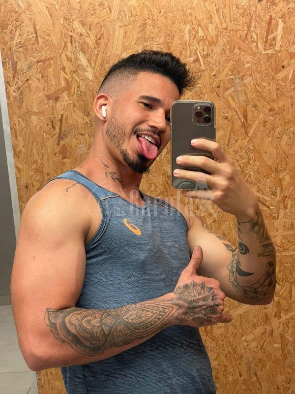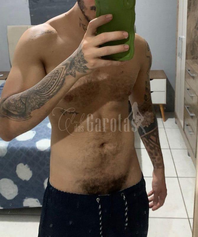 Sou Léo Veras, jovem de 25 anos, com corpo definido, tatuagens marcantes e um sorriso que entrega segurança e desejo.