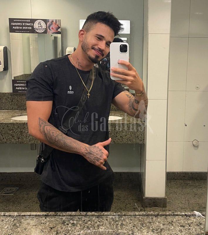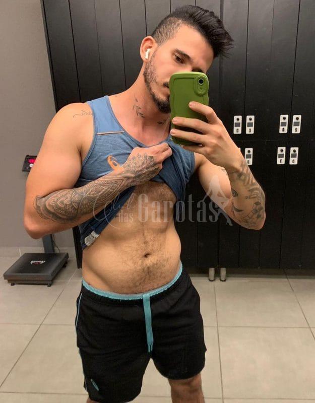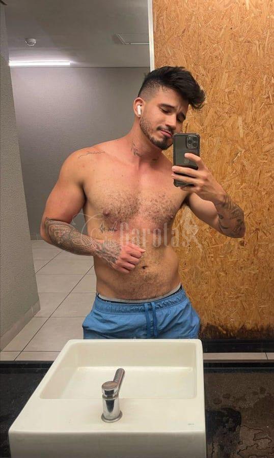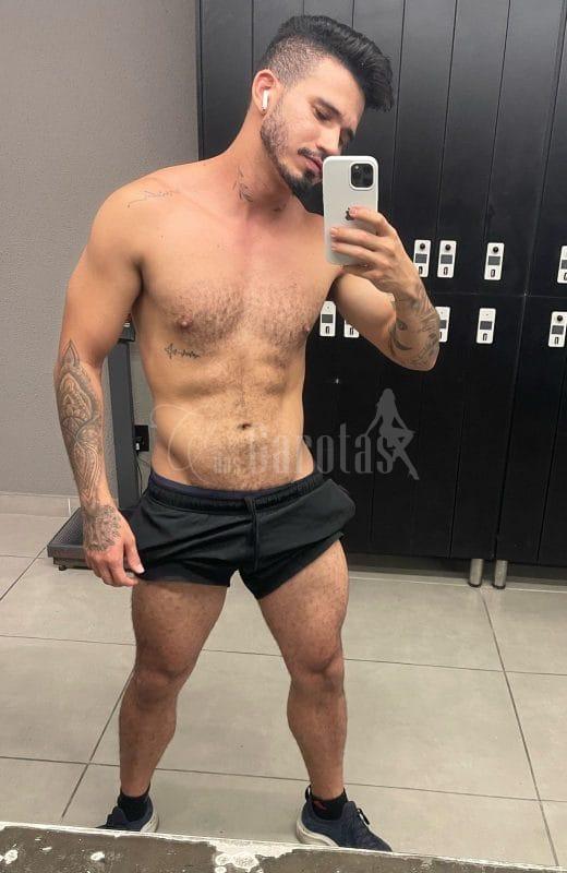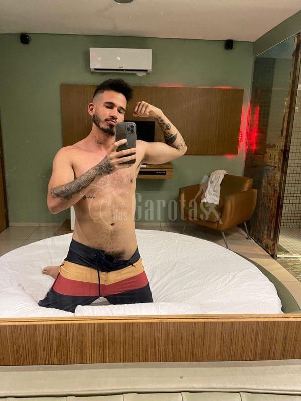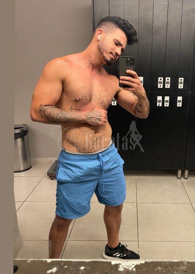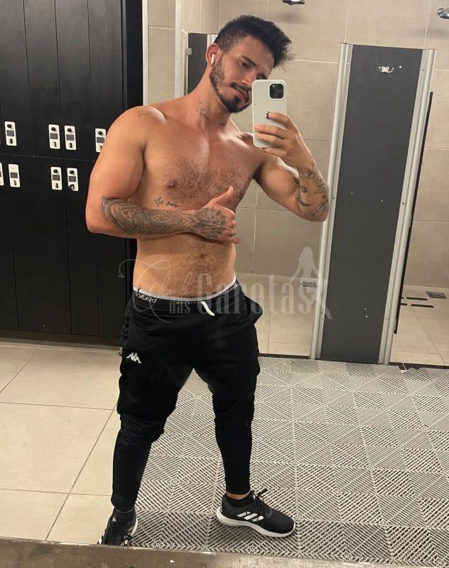 Sou Léo Veras, jovem de 25 anos, com corpo definido, tatuagens marcantes e um sorriso que entrega segurança e desejo.