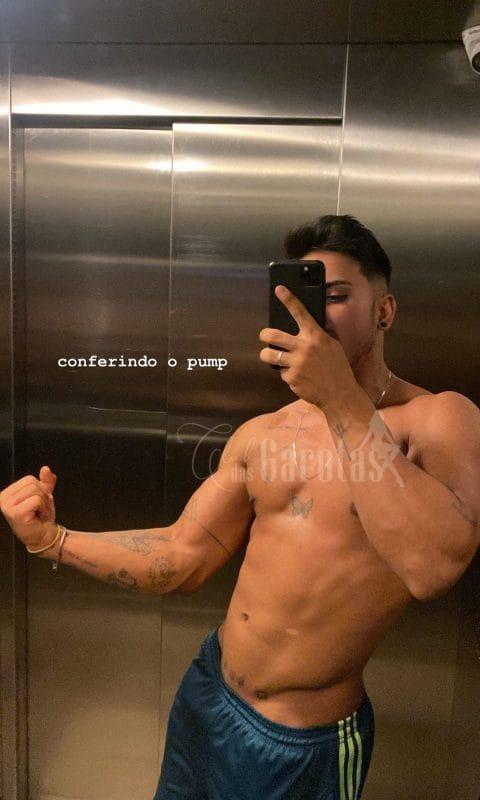 • O corpo sarado pressionando o seu