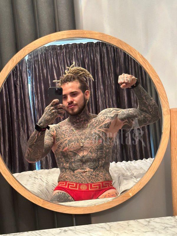 Sou Guilherme Magon, 23 anos, 1,81m, 70kg, tatuado dos pés à cabeça e com 21cm de dote. Atendo em local próprio, no seu endereço, hotéis e motéis. Também acompanho em eventos com postura e descrição.
