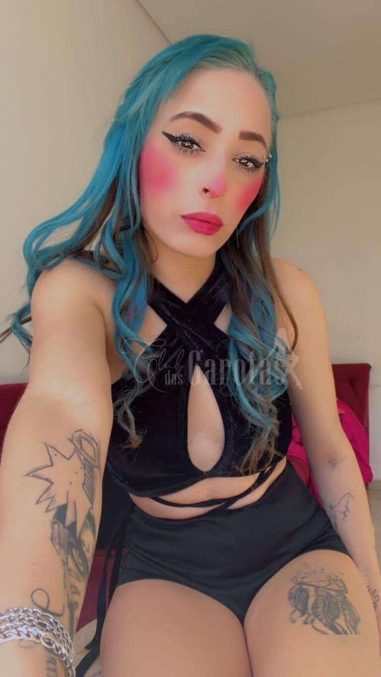 Acompanhante alternativa em Curitiba – cabelo azul, tatuada e com local