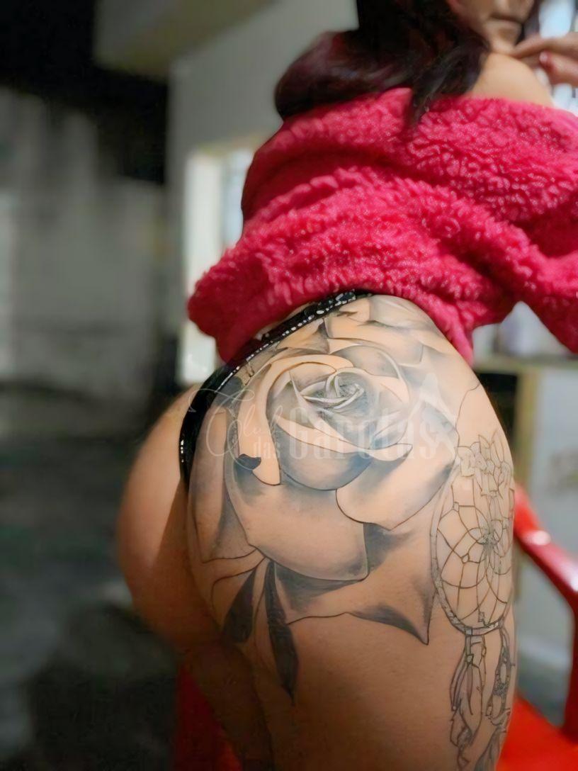 • Corpo natural, tatuado e com quadril hipnótico