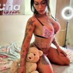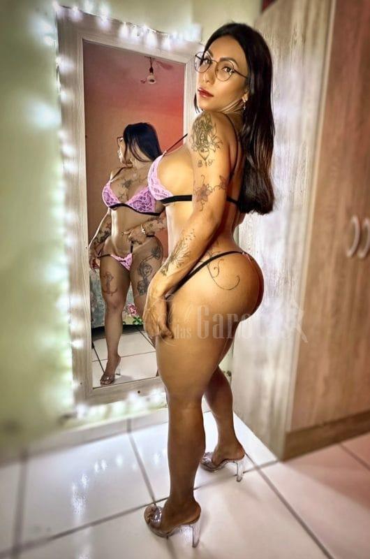 A mistura de boneca carinhosa com postura segura, minha bunda GG, meu corpo marcado pelas tattoos e o cuidado em cada detalhe do encontro, sem correria e com muita química.